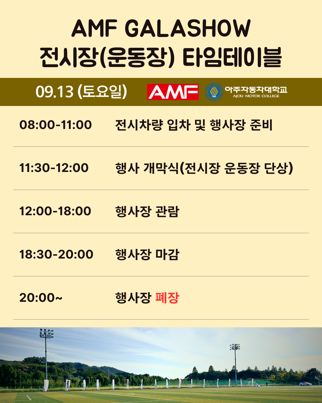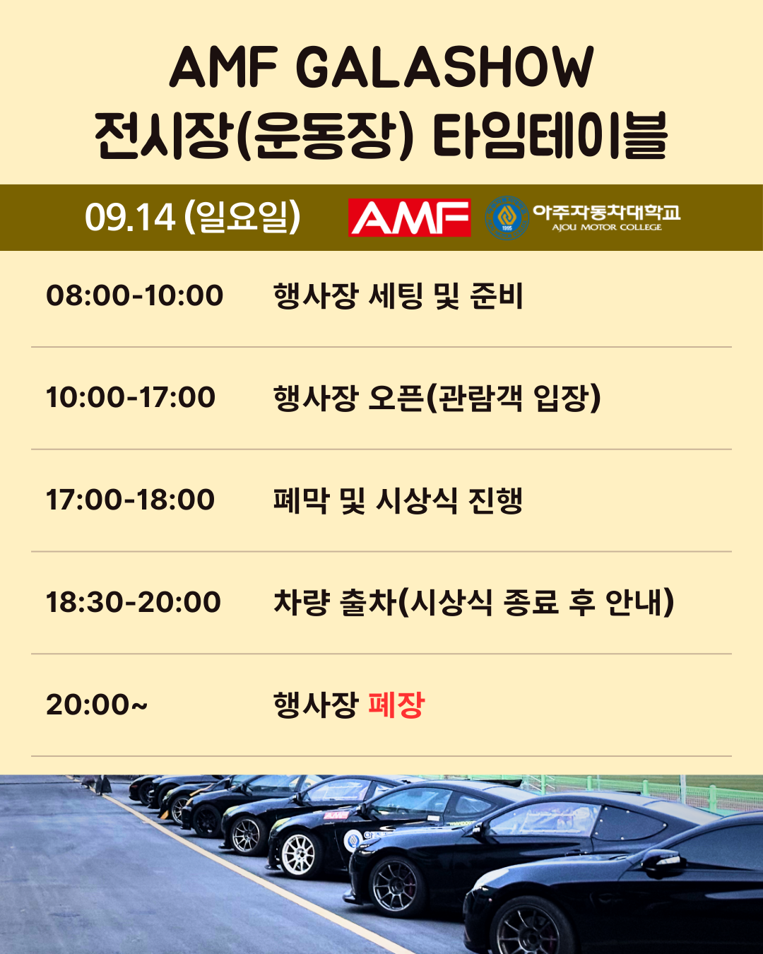 ▲ AMC 모터쇼 전시차량 타임테이블(잔디구장)